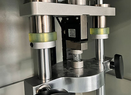 将弹簧、拉簧装夹于试验机上,以自设定的速度进行疲劳试验,并实时监控力值;循环到设定次数后试验完成,两工位均有力值传感器,均可实时显示受到的力值大小。